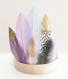 Each feather is hand painted and hand cut using only the best duck, goose and macaw feathers.