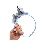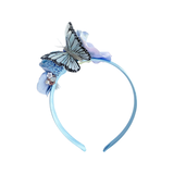 Made of satin bases, I design our whimsical pieces with a mixture of pom poms, butterflies, sequins, birds, silk flowers, greek charms and swarovski crystals.