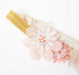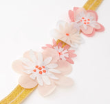 - The set features a fabric flower headband with a hook & loop fastener
