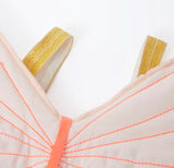 - No dress-up box is complete without a set of wings, and these are sure to delight any little fairy! Made from beautiful peach cotton and featuring elegant stitched details. These wings are attached with gold elastic arm straps, making them perfect for any adventure. As a finishing touch, this dress-up set also comes with a brilliant flower headband and a drawstring storage bag by Meri Meri.