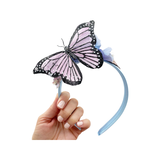 Made of satin bases, I design our whimsical pieces with a mixture of pom poms, butterflies, sequins, birds, silk flowers, greek charms and swarovski crystals.
