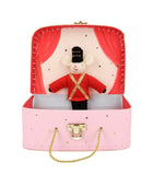 This is a wonderful gift for children who love ballet, and will give hours of imaginative play. It features a little suitcase, which opens to reveal a theater backdrop and 2 adorable fabric ballet dancer mice. The female mouse has a beautiful pink tulle dress, removable wings, a tiara and shoes. The male mouse is dressed in a soldier outfit, with a felt jacket and hat. Also included is a delightful mini fringed blanket, to use as a prop.